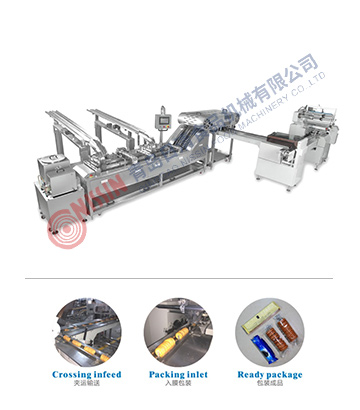 該機是我公司QNF360機型的換代產(chǎn)品。該無托盒包裝機使用伺服電機控制,使該機自動化程度進一步提升、性能更加穩(wěn)定可靠、操作更加簡便。最顯著的特點是:包裝產(chǎn)品尺寸變換非常簡單。 用 途: 適用于多枚餅干的無托盤集合大包裝,方、圓、橢圓等各種形狀餅干皆可。 主要技術(shù)參數(shù): 包裝能力:30-100包/分(據(jù)包裝膜材質(zhì),厚度及包裝規(guī)格確定) 包裝規(guī)格:長100-240mm,寬40-80mm,高40-70mm 總機尺寸:主機部分4020mm*1150mm*1840mm 供料部分3100*580mm*1130mm 裝機總?cè)萘浚?.2KW, 單相 220V, 50Hz 總重量:1200kg 包裝材料:紙/PE,OPP/PE,OPP/AL/PE等適合于加熱封口的包裝材料 機械特性 l 機械結(jié)構(gòu)的整體設(shè)計簡單、合理,操作簡便,調(diào)節(jié)方便 l 使用夾運輸送機構(gòu),完全可靠的解決了包裝不同長度物品尺寸變換的繁瑣及倒餅的弊病。 l 縱封裝置采用三對牽引輪構(gòu)成,保證封口高速封合、穩(wěn)定、美觀。 l 精巧的自動供料裝置可將包裝物準確無誤投放于主機進入包裝封口。 l 包裝尺寸調(diào)節(jié)方便快捷。 電氣特性 l 送膜、供料采用數(shù)字伺服電機控制系統(tǒng) l 供料部分采用運動控制單元,供料同步、準確、自動記憶 l 變頻調(diào)速,方便、準確、可靠 l 色表追蹤點自動定位、自動跟標 l 包裝袋自動測量、記憶 l 供料位置即使在運動中也可隨意調(diào)整